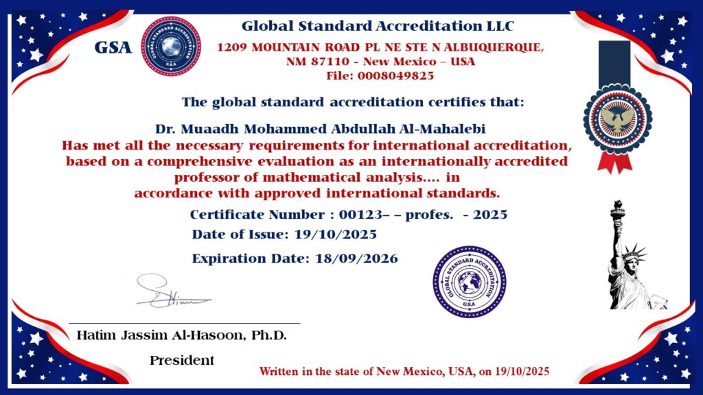 يُعتبر هذا الاعتماد شهادة على جودة إسهاماته العلمية ومطابقتها لأعلى المستويات الدولية في مجالات الرياضيات والتحليل الرياضي وتطبيقاته.